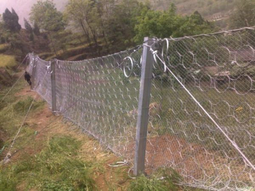 柔性防护网体系是以钢丝绳网为主的各类柔性网掩盖包裹在所需防护斜坡或岩石上,以束缚坡面岩石土体的风化脱落或损坏以及为岩崩塌(加固作用),或将落石操控于必定范围内运动(围护作用)。